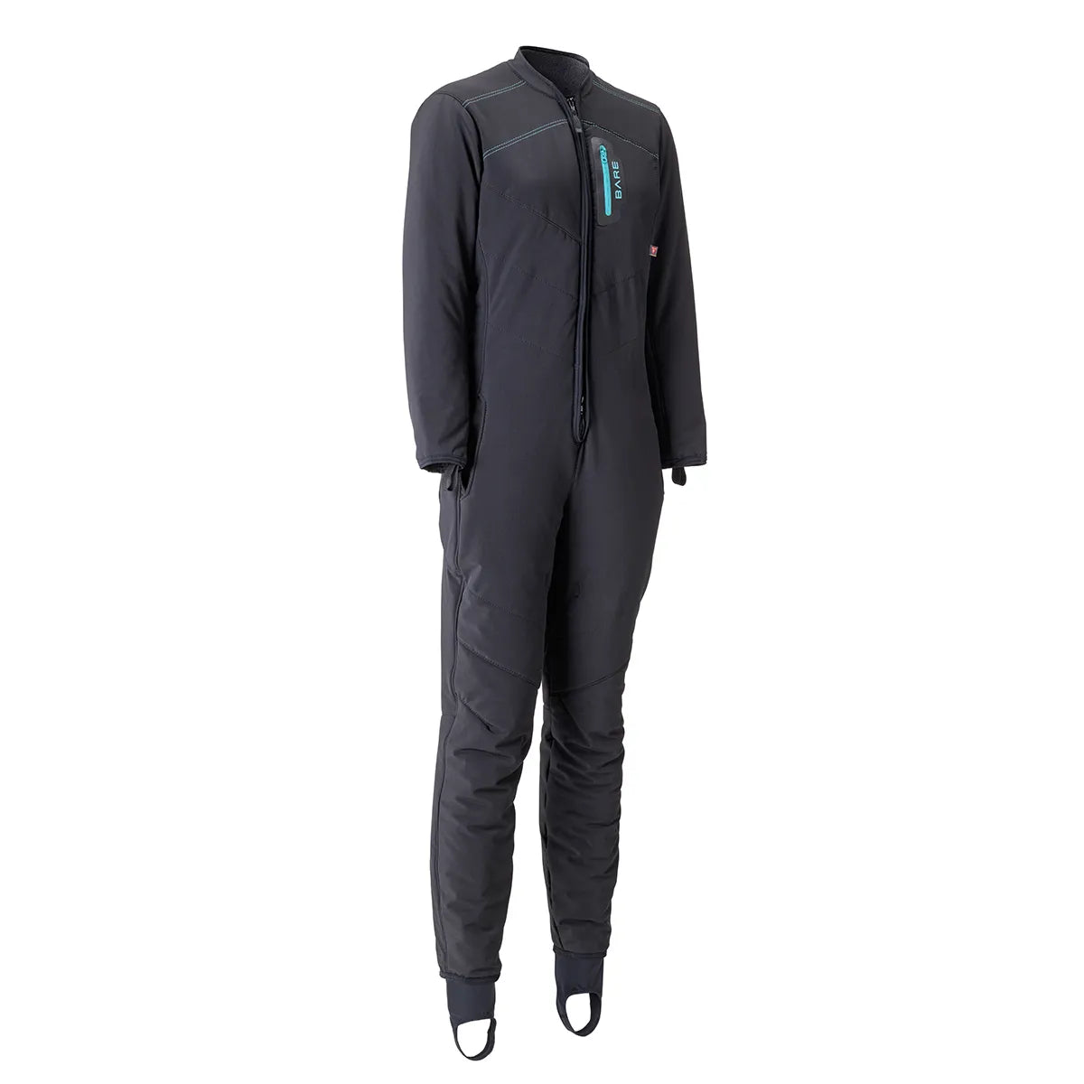 This full suit is designed with practicality at its core, featuring an extra-long front zipper for easy entry and exit, thumb loops to maintain sleeve position while donning a drysuit, and hand warmer pockets for added comfort in cold waters. The drop seat design tailored for women, stitched buttonholes for P-valve installation, and Lycra stirrups to secure the pants make this suit exceptionally user-friendly.